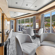 The MS Trollfjord, launched in 2002, is named after the stunning, narrow Trollfjord in Northern Norway. The ship is a sister vessel to the Midnatsol and has been fully upgraded to a premium expedition experience. It carries 822 passengers total capacity but far fewer on expedition itineraries, offering a more intimate atmosphere than traditional cruise ships. Its design features large, panoramic windows and a two-story observation lounge to maximize the viewing of Norway's dramatic fjord scenery.